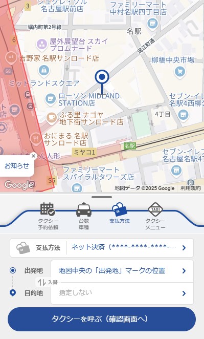 ※タクシーを呼ぶ以降の流れについては「今すぐ注文」「予約注文」をご確認ください。