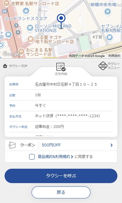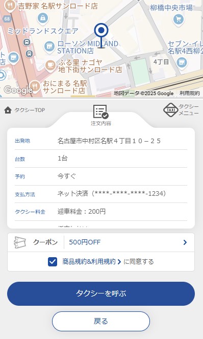 注文内容を再確認し、内容が問題なければ「タクシーを呼ぶ」をタップしてください。