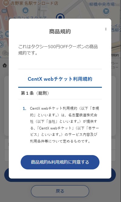 クーポンを選択すると、「商品規約&利用規約に同意する」が表示されますのでタップしてください。