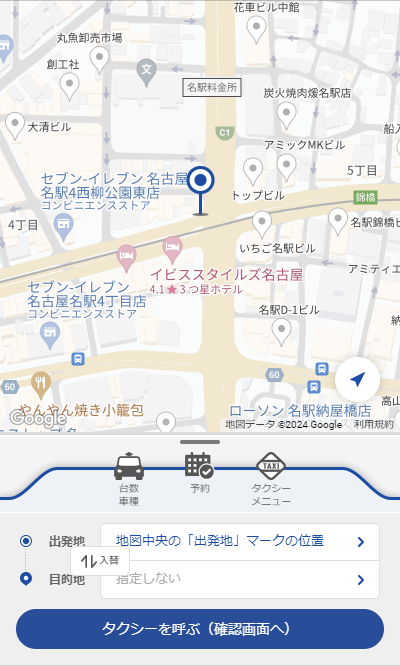 この画面が表示されたらタクシー配車をご利用いただけます。
